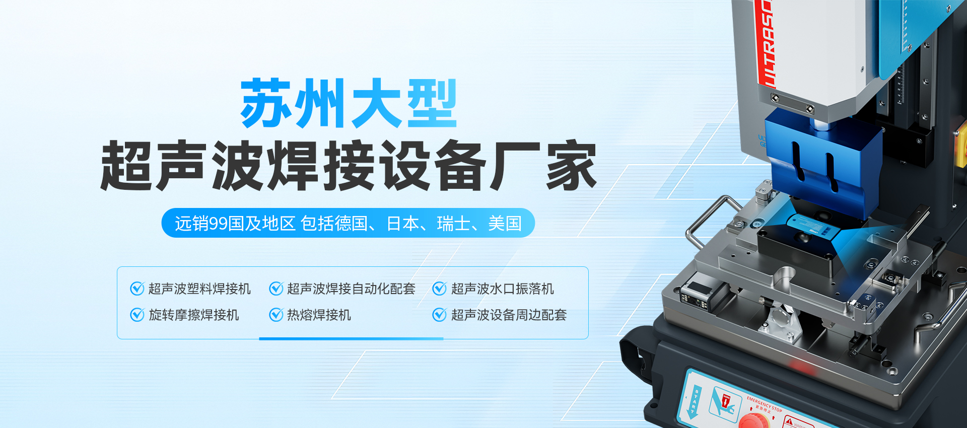 為海內外各行業(yè)、企業(yè)提供了大量穩(wěn)定性強的優(yōu)質超聲波塑焊設備及應用解決方案